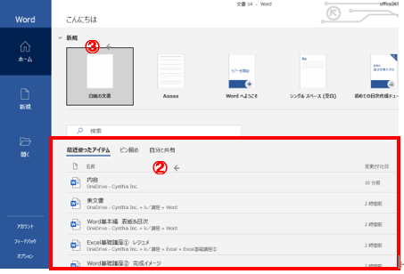 ❶デスクトップの【Wordアプリ】をダブルクリックして開く