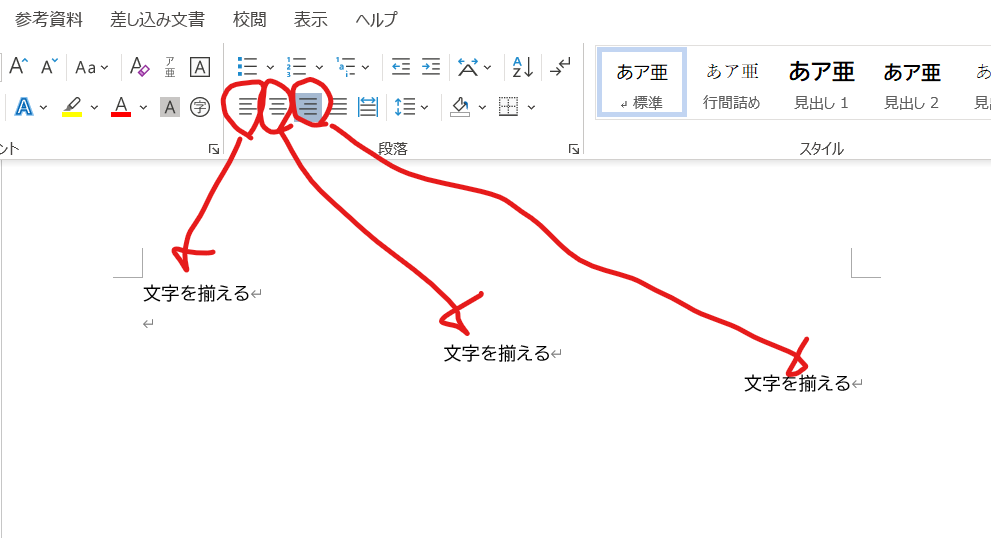 ❶ホームタブ→スタイルグループ→標準を【右クリック】